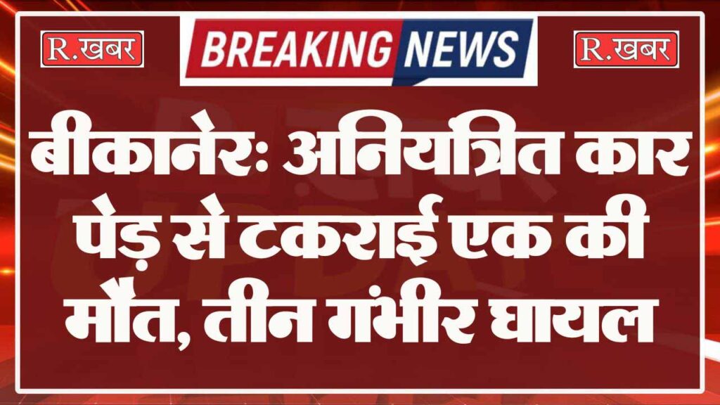 बीकानेर: अनियंत्रित कार पेड़ से टकराई एक की मौत, तीन गंभीर घायल