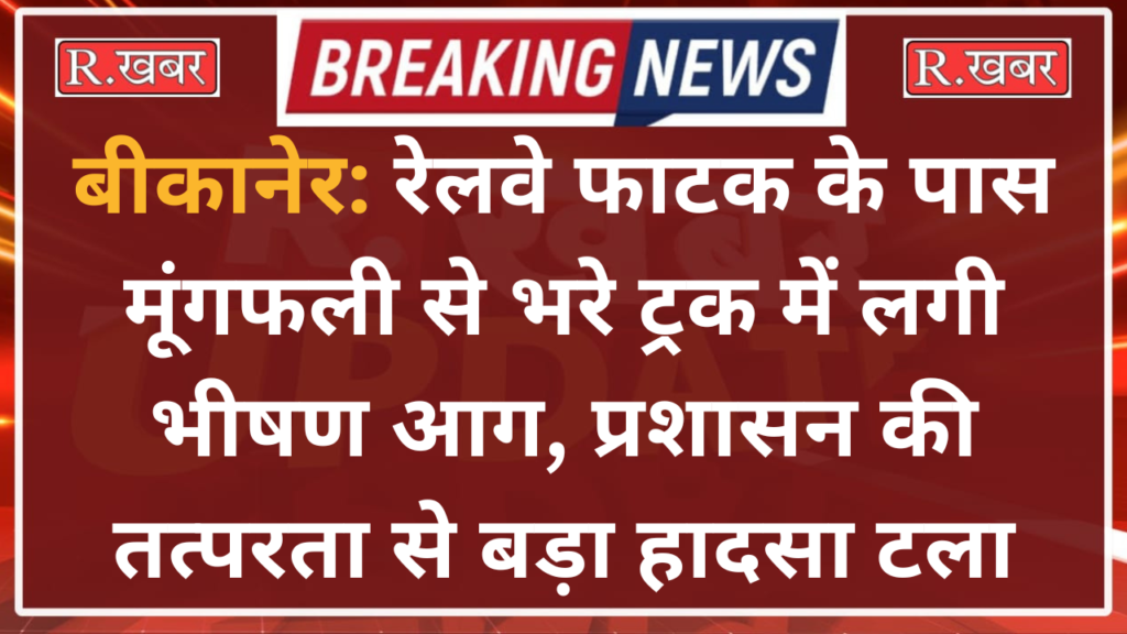 बीकानेर: रेलवे फाटक के पास मूंगफली से भरे ट्रक में भीषण आग लगी, प्रशासन की तत्परता से बड़ा हादसा टला