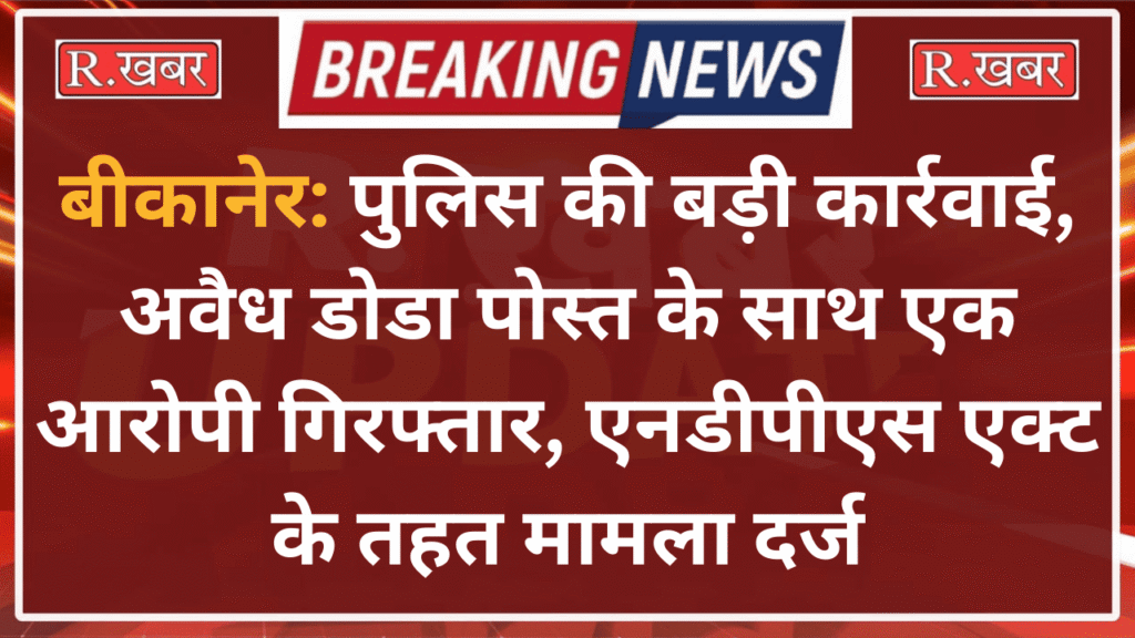 बीकानेर: पुलिस की बड़ी कार्रवाई, अवैध डोडा पोस्त के साथ एक आरोपी गिरफ्तार, एनडीपीएस एक्ट के तहत मामला दर्ज
