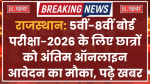 राजस्थान, शिक्षाराजस्थान: 5वीं-8वीं बोर्ड परीक्षा-2026 के लिए छात्रों को अंतिम ऑनलाइन आवेदन का मौका, पढ़े खबर R.Khabar Team / January 21, 2026