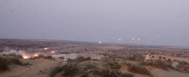 रेगिस्तान में गूंजती गोलाबारी, आसमान में मंडराते हेलीकॉप्टर और ड्रोन की आवाज…यह सिर्फ एक अभ्यास नहीं, बल्कि सामरिक तैयारी का प्रदर्शन था। भारतीय सेना ने स्पष्ट कर दिया कि देश की सीमाओं की सुरक्षा के लिए वह हर चुनौती का सामना करने को पूरी तरह तैयार है।