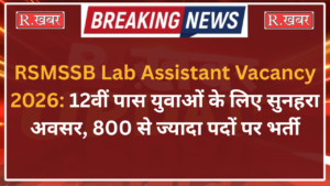 राजस्थान, जॉब्स/कैरियरRSMSSB Lab Assistant Vacancy 2026: 12वीं पास युवाओं के लिए सुनहरा अवसर, 800 से ज्यादा पदों पर भर्ती R.Khabar Team / January 26, 2026