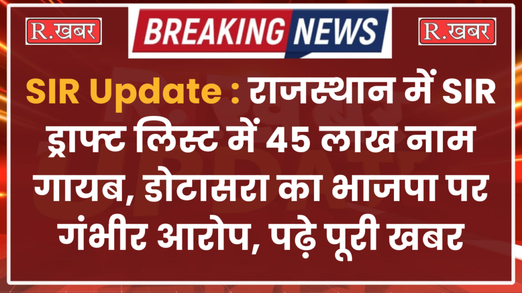 SIR Update : राजस्थान में SIR ड्राफ्ट लिस्ट में 45 लाख नाम गायब, डोटासरा का भाजपा पर गंभीर आरोप, पढ़े पूरी खबर