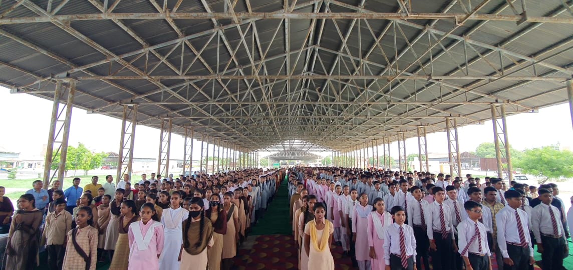 राजस्थान शिक्षा विभाग द्वारा शुक्रवार के दिन गिनीज बुक ऑफ वर्ल्ड रिकॉर्ड में एक करोड़ से ज्यादा बच्चे एक साथ सामूहिक देशभक्ति गीत गायन में भाग लेकर अपना नाम दर्ज कराने की तैयारी कर चुका है। खाजूवाला के इस कार्यक्रम में कक्षा 9 से 12 के लगभग 1200 बच्चों ने भाग लिया। कार्यक्रम का मंच संचालन महात्मा गांधी राजकीय विद्यालय के वरिष्ठ अध्यापक लक्ष्मी नारायण शर्मा ने किया। मुख्य अतिथि के तौर पर उपखंड अधिकारी श्योराम ने घर-घर तिरंगा अभियान और एपिक आधार लिंक कार्यक्रम की जानकारी दी। साथ ही बच्चों को शिक्षा के साथ-साथ शारीरिक व मानसिक विकास की अहमियत समझाइए। इस कार्यक्रम में उपखंड अधिकारी श्योराम, तहसीलदार गिरधारी सिंह, नगर पालिका चेयरमैन अशोक फौजी, मुख्य ब्लॉक शिक्षा अधिकारी ओमप्रकाश सहित स्टाफ, पुलिस प्रशासन, महात्मा गांधी विद्यालय के प्रधानाचार्य मदन कुमार खत्री, शहीद ओम प्रकाश राजकीय उच्च माध्यमिक विद्यालय के प्रधानाचार्य भूपेंद्र कौशिक, उप प्राचार्य सरोज, निजी विद्यालयों के संस्था प्रधान आदि गणमान्य नागरिक उपस्थित रहे।