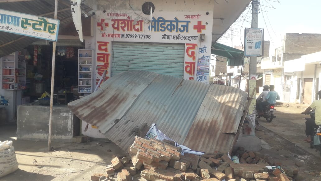 खाजूवाला, सीमावर्ती क्षेत्र में मंगलवार शाम को मौसम का मिजाज अचानक बदल गया। यहां 50 से 60 किलोमीटर प्रति घंटा की रफ्तार से तूफान आया। तूफान के बाद तेज बारिश हुई, बारिश के बाद तापमान 8 डिग्री तक गिर गया। तूफान के कारण खाजूवाला में दुकानों के छप्पर, टीन शेड उड़ गए व कई स्थानों पर पेड़ टूट कर सड़कों व नहरों में गिर गए। वही खेतों में कटी हुई रखी फसलें उड़ गई। मौसम खराब होते ही विद्युत आपूर्ति खाजूवाला क्षेत्र में ठप हो गई, जोकि बुधवार सुबह तक सुचारू नहीं हो पाई।