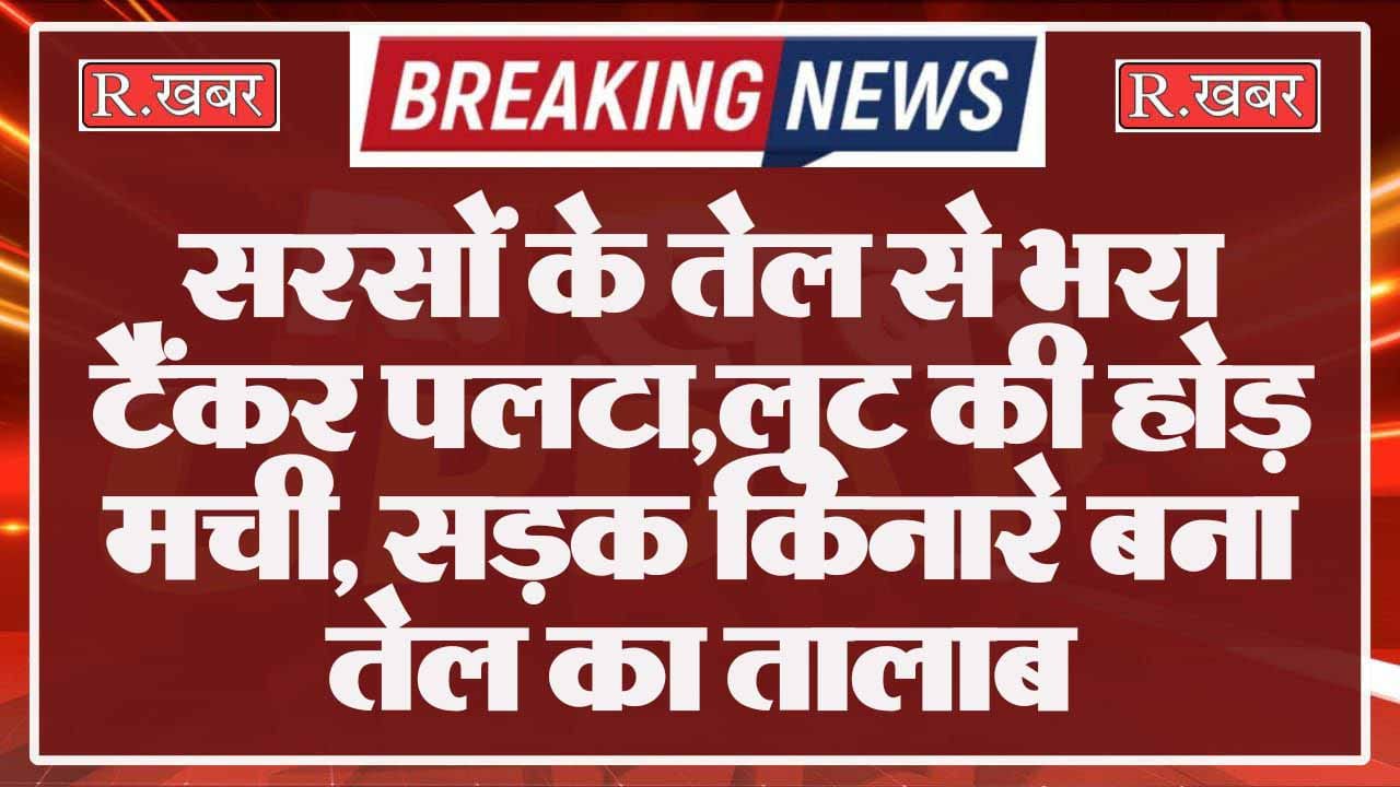 सरसों के तेल से भरा टैंकर पलटा,लूट की होड़ मची, सड़क किनारे बना तेल का तालाब