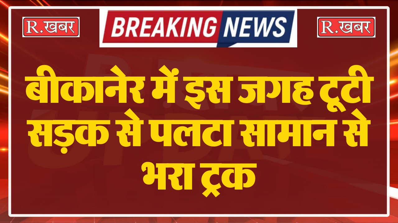 बीकानेर में इस जगह टूटी सड़क से पलटा सामान से भरा ट्रक