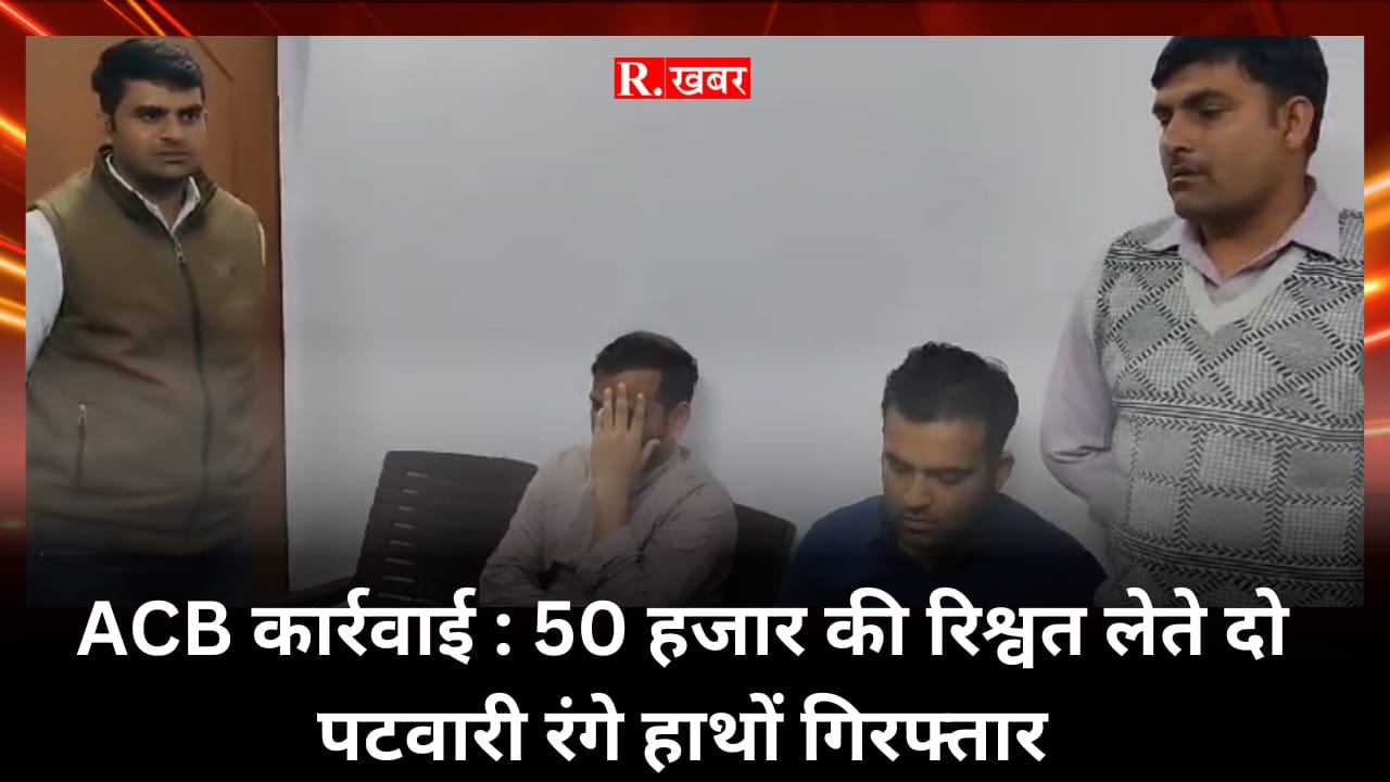 R. खबर ब्यूरो, भरतपुर। रूपवास कस्बे में एसीबी मुख्यालय के निर्देश पर भरतपुर इकाई द्वारा हरीश शर्मा पटवारी हल्का चैकोरा तहसील रूपवास कृष्णकांत शर्मा पटवारी हल्का खानसूरजपुर तहसील रूपवास को परिवादी से 50 हजार रिश्वत लेते हुए रंगे हाथों गिरफ्तार किया है।