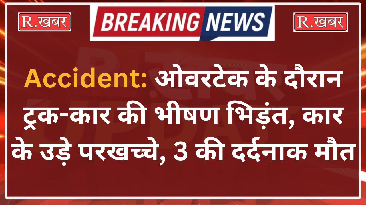 Accident: ओवरटेक के दौरान ट्रक-कार की भीषण भिड़ंत, कार के उड़े परखच्चे, 3 की दर्दनाक मौत