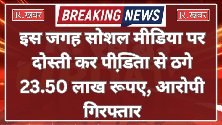 R.खबर ब्यूरो। झालावाड़ जिले के साइबर थाने में सोशल मीडिया के माध्यम से फ्रेंडशिप कर लाखों रुपए ठगने का मामला सामने आया है। जिला पुलिस अधीक्षक ऋचा तोमर ने बताया कि साइबर थाने में एक पीडि़ता ने दर्ज कराई रिपोर्ट में बताया कि उसके साथ दिल्ली के एक युवक ने सोशल मीडिया के माध्यम से फ्रेंडशिप कर 23.50 लाख रुपए ठग लिए। बताया जा रहा है कि जब पैसे वापस मांग तो आरोपी ने देने से मना कर दिया। इस पर झालावाड़ साइबर थाने में मामला दर्ज करवाया गया। पुलिस ने अभियुक्त से एक मोबाईल बरामद कर लिया।
