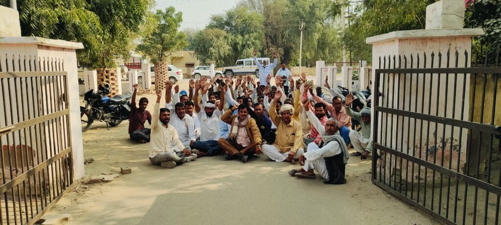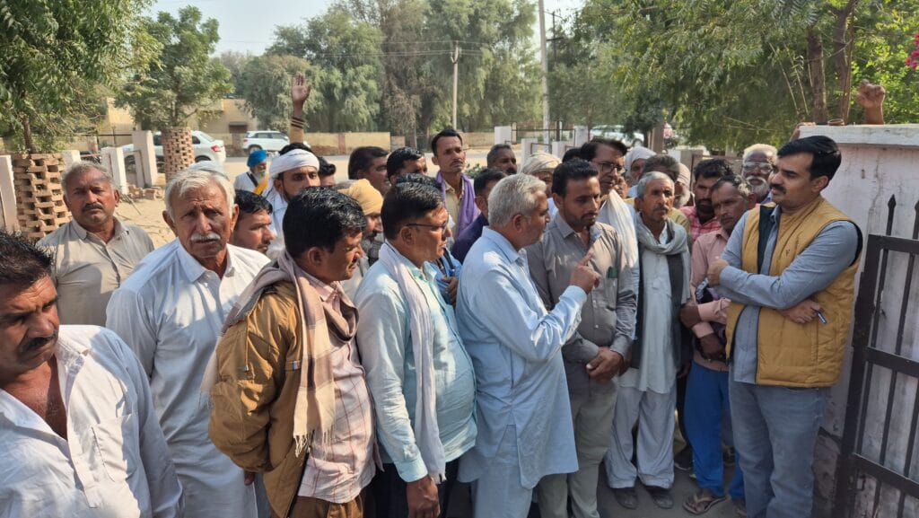 खाजूवाला, खाजूवाला के अन्तिम छोर के किसानों ने सोमवार को उपखण्ड अधिकारी कार्यालय के सामने प्रदर्शन किया। यहां बीडी नहर के किसानों ने जमकर नारेबाजी की और गेट के आगे बैठ गए। इन्होंने उपखण्ड अधिकारी के नाम का ज्ञापन राजस्व तहसीलदार को दते हुए नहरों में सिंचाई पानी कम होने की शिकायत की। वहीं मांग की कि अगर समय रहते पूरा पानी नहीं दिया गया तो किसान आन्दोलन की राह पर उतरेंगे।