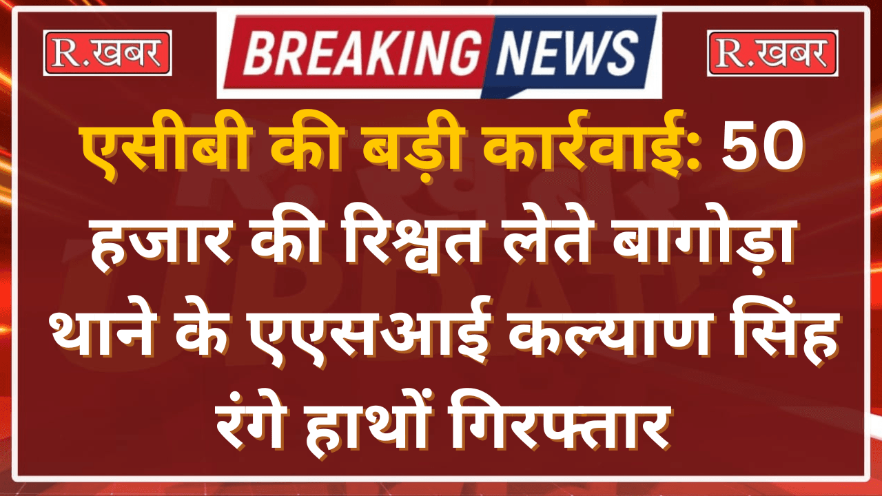 एसीबी की बड़ी कार्रवाई: 50 हजार की रिश्वत लेते बागोड़ा थाने के एएसआई कल्याण सिंह रंगे हाथों गिरफ्तार