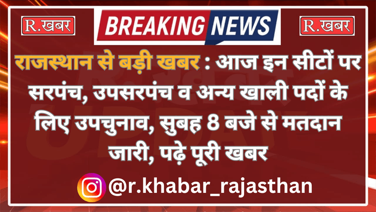 R.खबर ब्यूरो। राजस्थान से बड़ी खबर सामने आई है, जंहा पंचायतीराज संस्थाओं के 205 खाली पदों पर आज उपचुनाव हो रहे है। जानकारी के अनुसार इनमें जिला प्रमुख के 3, प्रधान के 1, उपप्रधान के 1, जिला परिषद सदस्य के 4, पंचायत समिति सदस्य के 18, सरपंच के 20, उपसरपंच के 15 और पंच के 143 रिक्त पदों के लिए उपचुनाव हो रहे है। सभी मतदान केंद्रों पर आज सुबह 8 बजे से मतदान शुरू हो गया है। मतदान केंद्रों के बाहर पुलिस सुरक्षा व्यवस्था दिखाई दे रही है। आज शाम 5 बजे तक मतदान होगा। मतदान समाप्ति के तुरंत पश्चात ग्राम पंचायत मुख्यालय पर ही मतगणना होगी। उपसरपंच के चुनाव के लिए 15 फरवरी को समस्त आवश्यक कार्यवाही पूर्ण करते हुए मतदान होगा और मतदान समाप्ति के तुरंत पश्चात मतगणना होगी।