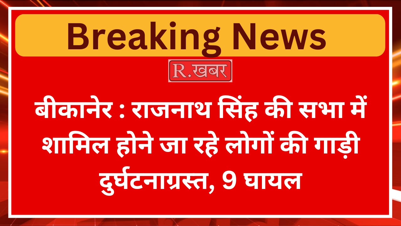 बीकानेर : राजनाथ सिंह की सभा में शामिल होने जा रहे लोगों की गाड़ी दुर्घटनाग्रस्त, 9 घायलबीकानेर, बीकानेर के कोलायत कस्बे के झझु के पास सडक़ हादसा हुआ है। जिसमें नौ घायल हुए है। जानकारी के अनुसार नौ में से चार जनों को ज्यादा चोटें लगने के कारण बीकानेर रेफर किया गया है। सूत्रों से मिली जानकारी के अनुसार कोलायत में केन्द्रीय रक्षा मंत्री राजनाथ सिंह की सभा में शामिल होने के लिए आ रहे थे। इस दौरान झझु के पास कैंपर व डंपर की भिड़ंत हो गई। हादसे में कुल नौ लोग घायल हुए, जिनमे चार घायलों को बीकानेर रेफर किया। हादसे की सूचना मिलने पर विधायक अंशुमान सिंह भाटी व प्रत्याशी अर्जुनराम मेघवाल कोलायत उपजिला अस्पताल पहुंचे, जहां उन्होंने घायलों के हालात जाने।
