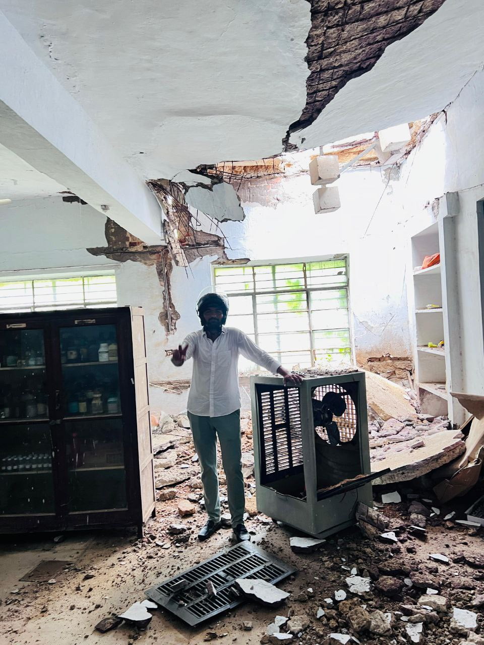 बीकानेर। संभाग का सबसे बड़ा राजकीय डूंगर महाविद्यालय का पूरा भवन जर्जर हालात में है गुरुवार सुबह अचानक महाविद्यालय बीकानेर के राजकीय डूंगर महाविद्यालय का पूरा भवन ही जर्जर हालात में है, आज महाविद्यालय के विज्ञान भवन की छत गिर गई, एनएसयूआई जिलाध्यक्ष कृष्ण कुमार गोदारा ने कहा पूरा भवन ही जर्जर हालात में फिर भी कॉलेज प्रशासन विज्ञान भवन में परीक्षाओं का आयोजन करवा रहा आयोजन। अगर ये छत परीक्षा देते समय गिरती तो बड़ा हादसा होता। उधर कॉलेज के छात्रों ने हेलमेट कर आये और ये मैसेज दिया कि अगर आपको कॉलेज में पढऩा है तो हेलमेट पहनकर आना है अन्यथा आपके साथ कभी भी हादसा हो सकता है। गोदारा ने कहा कि पूरी बिल्डिग जर्जर अवस्था में है कभी भी कोई बड़ा हादसा हो सकता है। बिल्डिंग में परीक्षाओं का आयोजन ना करवाया जाए. इस दौरान एनएसयूआई ज़िलाध्यक्ष कृष्ण कुमार गोदारा व छात्रसंघ अध्यक्ष हरीराम गोदारा सहित अनेक छात्र उपस्थित रहे।