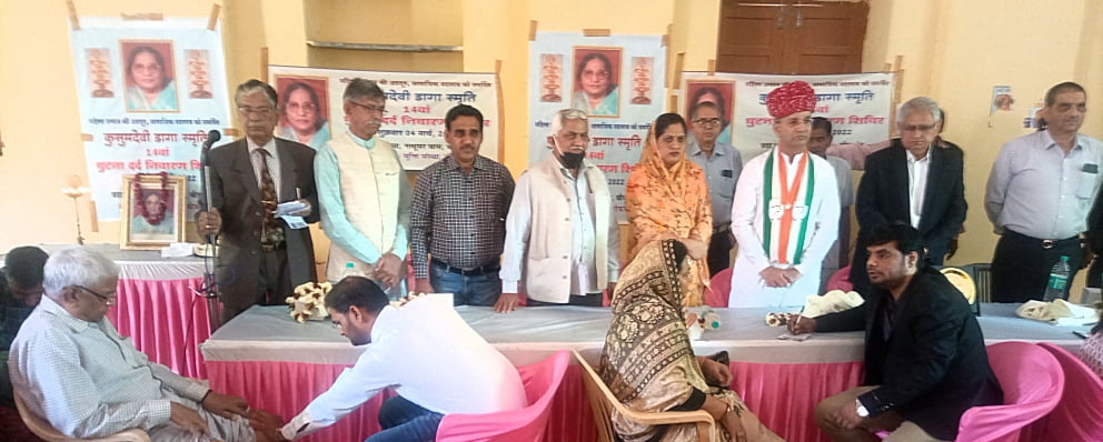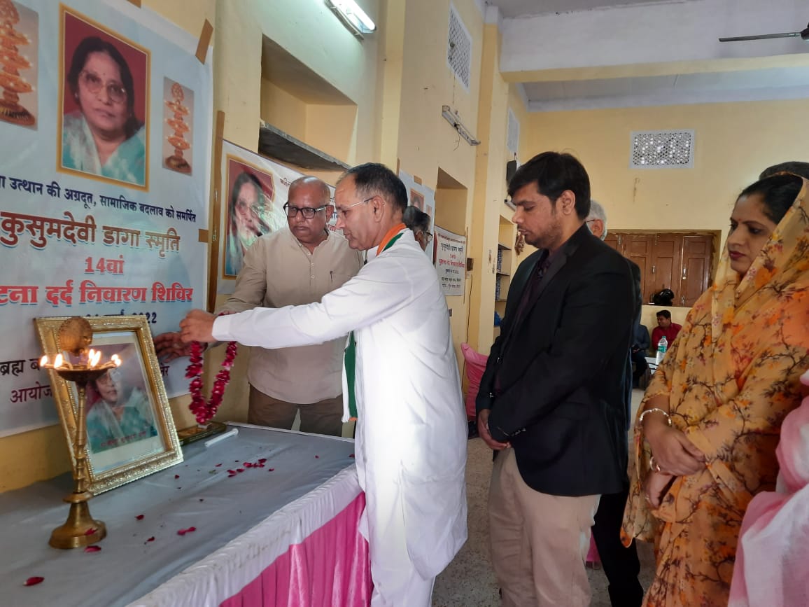 बीकानेर, निशुल्क चौदहवां घुटना दर्द निवारण कुसुम देवी डागा स्मृति शिविर शुक्रवार को नत्थूसर बास स्थित ब्रह्म बगीचा में आयोजित हुआ। कार्यक्रम के मुख्य अतिथि भीमराव अंबेडकर फाउंडेशन (अंबेडकर पीठ) के महानिदेशक मदन गोपाल मेघवाल थे। कार्यक्रम की अध्यक्षता महापौर सुशीला कंवर राजपुरोहित ने की। मेघवाल ने कहा कि पर सेवा से बड़ा कोई धर्म नहीं होता। संस्थान द्वारा कुसुम देवी डागा की स्मृति में यह पुनीत कार्य करना अनुकरणीय एवं उन्हें सच्ची श्रद्धांजलि है। उन्होंने कहा कि बाबा साहब डॉ. भीमराव अंबेडकर ने हमेशा पीड़ित, दुखी, वंचित और पिछड़े वर्ग के लोगों को आगे लाने का प्रयास किया, जो आज के दौर में भी प्रासंगिक है। उन्होंने कहा कि राज्य सरकार चिकित्सा एवं स्वास्थ्य के क्षेत्र में उल्लेखनीय योगदान दे रही है, मेघवाल ने कहा कि मुक्ति संस्था के तत्वावधान में गत 14 वर्षों से लगातार शिविर आयोजित कर जरूरतमंदों को लाभ पहुंचाना महत्वपूर्ण सेवा कर्म है ।