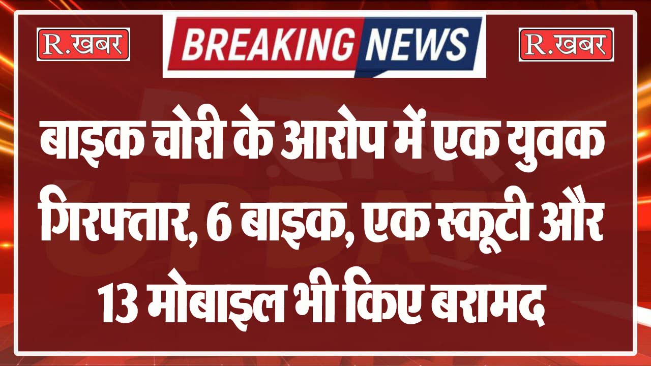 बाइक चोरी के आरोप में एक युवक गिरफ्तार, 6 बाइक, एक स्कूटी और 13 मोबाइल भी किए बरामद