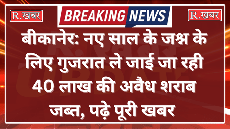 R.खबर ब्यूरो। बीकानेर, महाजन थाना क्षेत्र के अंतर्गत पुलिस ने नए साल के जश्न में बेचने के लिए तस्करी करके गुजरात ले जाई जा रही लगभग 40 लाख रुपये की शराब जब्त की। पुलिस ने ट्रक ड्राइवर को गिरफ्तार कर लिया है और आगे की पूछताछ की जा रही है।