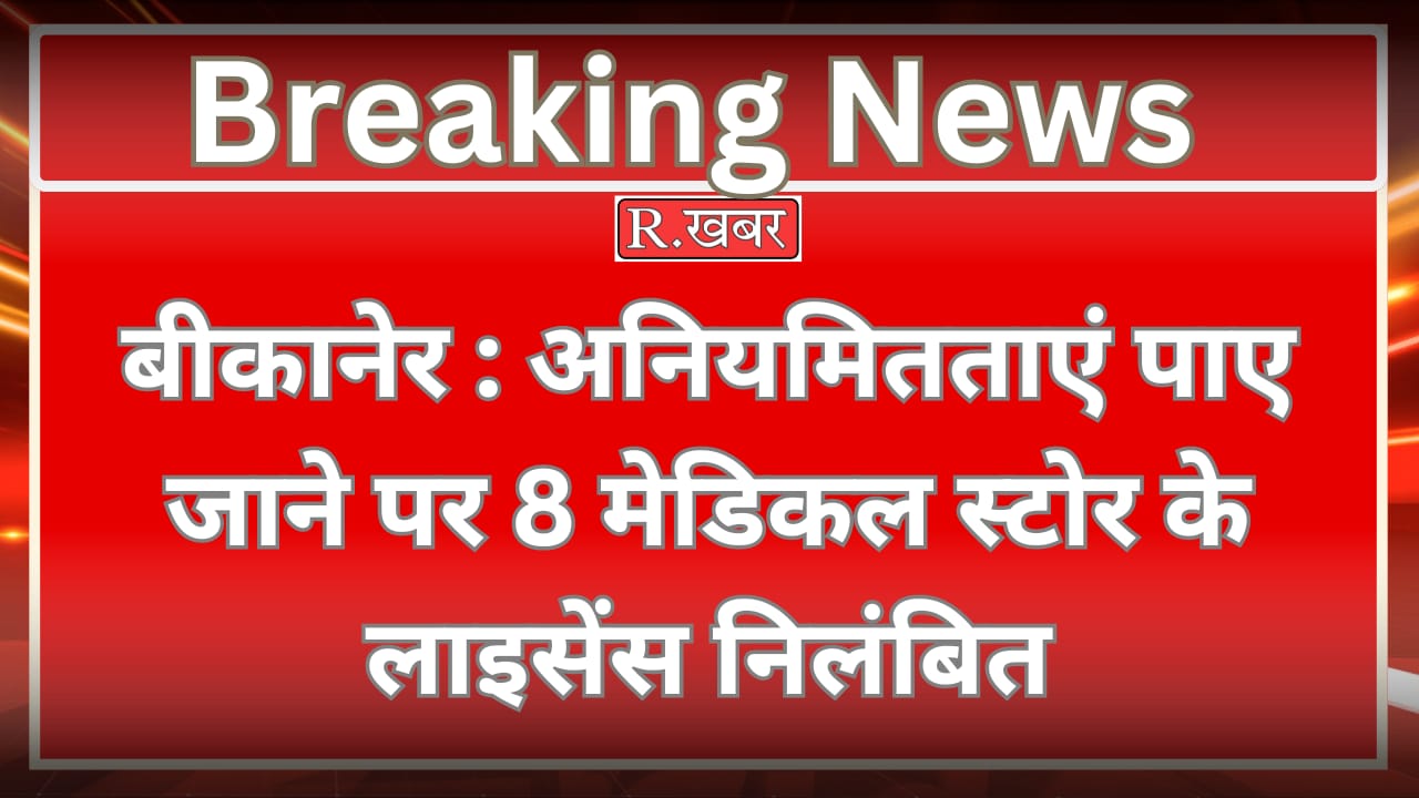 R.खबर, बीकानेर। अनुज्ञापन प्राधिकारी एवं सहायक औषधि नियंत्रक विभाग द्वाराकी गई जांच के दौरान विभिन्नअनियमितताएं पाए जाने पर 8 मेडिकल स्टोर्स के लाइसेंस निलम्बितकिए गए हैं।