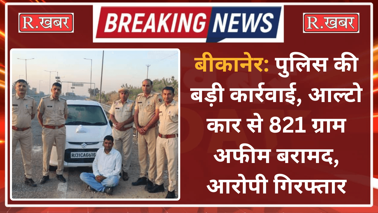 बीकानेर: पुलिस की बड़ी कार्रवाई, आल्टो कार से 821 ग्राम अफीम बरामद, आरोपी गिरफ्तार