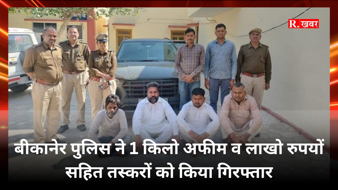 बीकानेर, बीकानेर जिले की देशनोक पुलिस की टीम ने रविवार को कार्रवाई करते हुए एक कार से 1 किलो अफीम, लाखो रुपये की नगदी सहित चार तस्करों को गिरफ्तार किया है।