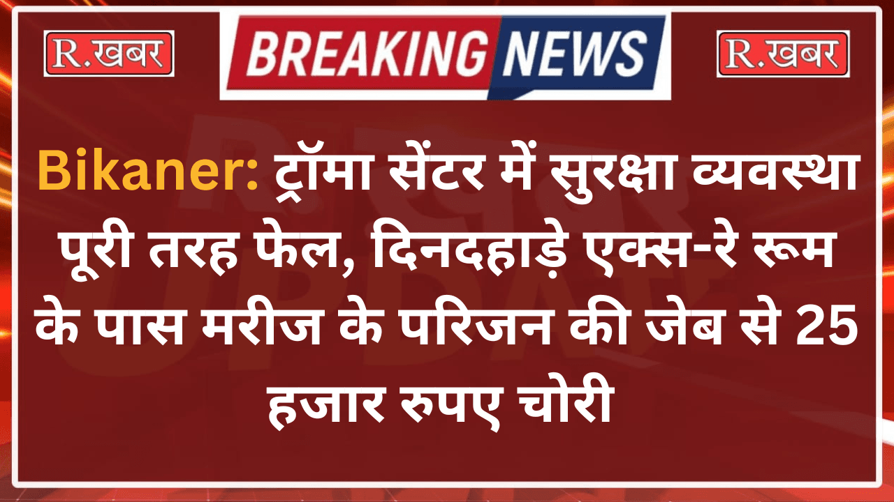 R.खबर ब्यूरो। बीकानेर, पीबीएम अस्पताल के ट्रॉमा सेंटर में सुरक्षा व्यवस्था की बड़ी खामी तब उजागर हो गई, जब गुरुवार दोपहर एक्स-रे रूम के पास एक मरीज के परिजन की जेब से 25 हजार रुपए चोरी हो गए। खास बात यह कि घटना से ठीक एक दिन पहले ही अस्पताल प्रशासन ने ट्रॉमा सेंटर का निरीक्षण कर बंद पड़े सीसीटीवी कैमरों को दुरुस्त करने के निर्देश दिए थे।