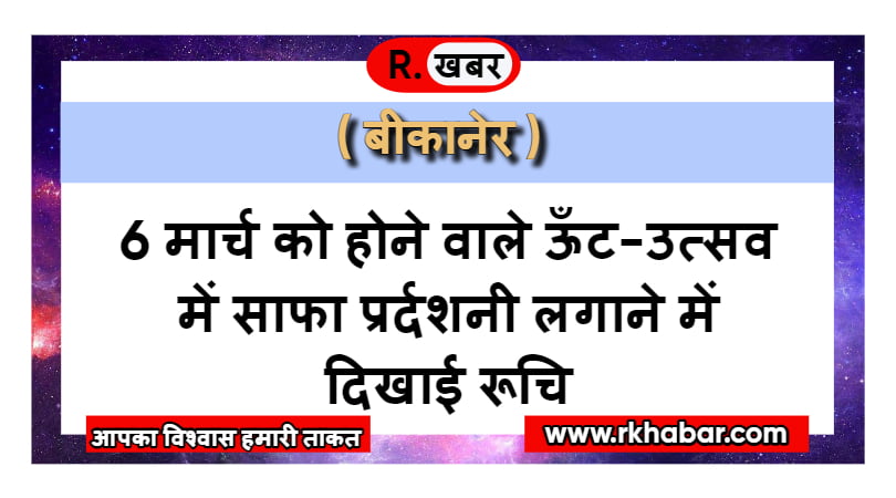 पवन शर्मा ने बताया कि उपस्थित व्यवसायी/कलाकारों में गोपाल बिस्सा, तमन्ना मीर मुमताज मीर, कमल व्यास, बंशी किराडू, विमल व्यास, लियाकत अली, रियाज खान, साफे वाली सोनू संयुक्त रूप से उप निदेशक पर्यटन विभाग भानु प्रताप से मिलकर कर ऊँट-उत्सव 2022 के कार्यक्रमों की जानकारी प्राप्त की व प्रर्दशनी हेतु सयुंक्त रूप प्रर्दशनी स्थल हेतु स्थान का मौका मुआवना भी किया।