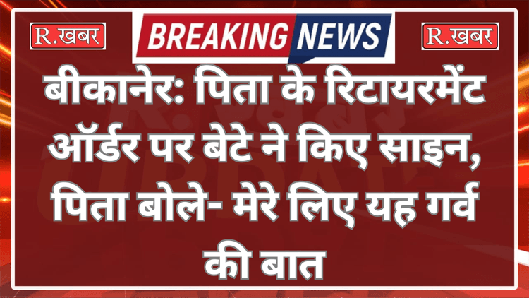 R.खबर ब्यूरो। बीकानेर, किसी पिता के लिए इससे बड़ी सम्मान की बात क्या होगी जब उसके रिटायरमेंट ऑर्डर पर उनका बेटा साइन करें। पिता-पुत्र की सफलता की यह कहानी राजस्थान के बीकानेर जिले से सामने आई है। जहां पिता के रिटायरमेंट ऑर्डर पर बेटे ने साइन किए। इस दौरान पिता-पुत्र दोनों की आंखें खुशी से नम हो गई। मामला बीकानेर के नोखा स्थित राजकीय उच्च माध्यमिक स्कूल बंधड़ा के शिक्षक जोगाराम जाट से जुड़ा है। जोगाराम जाट 39 साल 2 महीने 20 दिन की शिक्षक की नौकरी करने के बाद मंगलवार को रिटायर हुए थे।