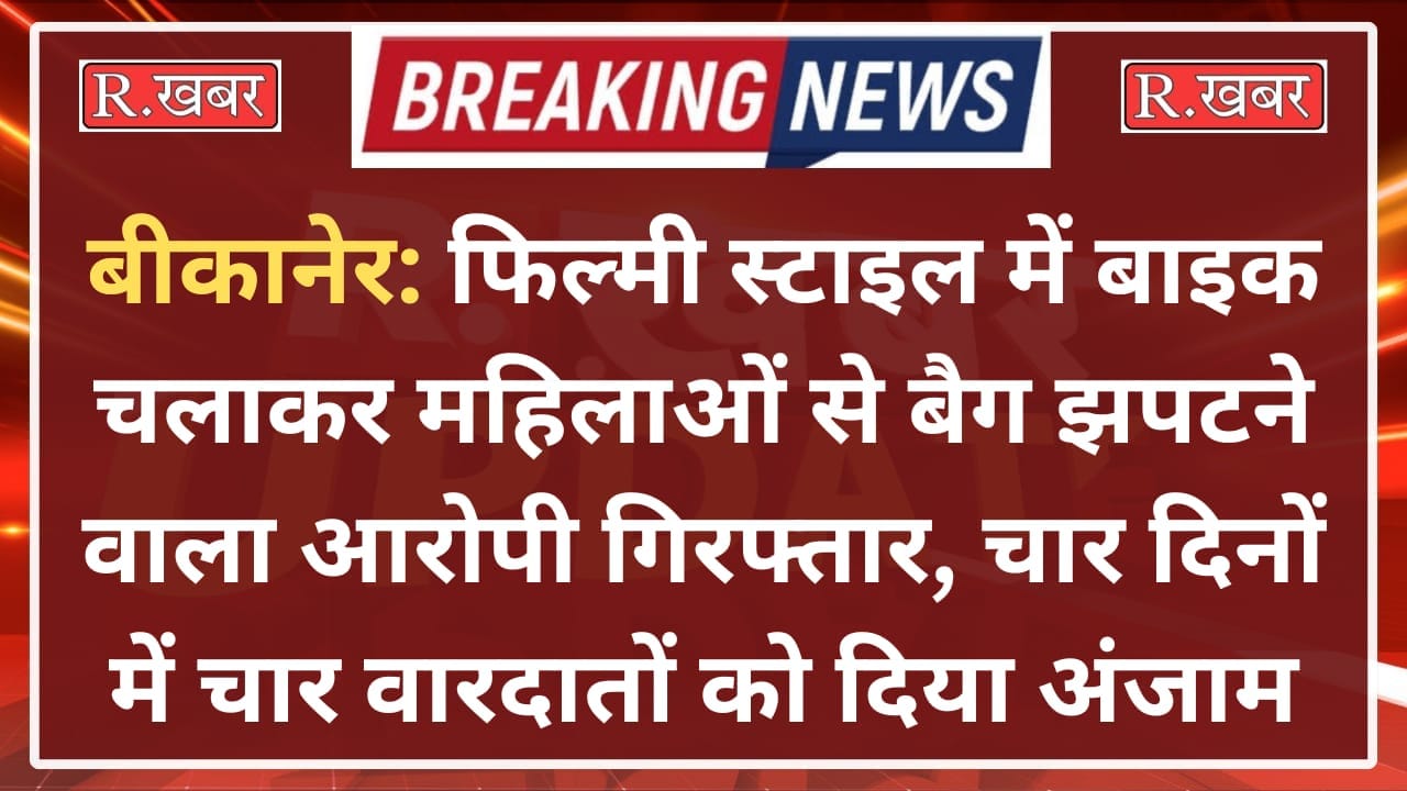 बीकानेर: फिल्मी स्टाइल में बाइक चलाकर महिलाओं से बैग झपटने वाला आरोपी गिरफ्तार, चार दिनों में चार वारदातों को दिया अंजाम