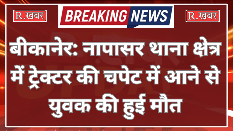 R.खबर ब्यूरो। बीकानेर के नापासर थाना क्षेत्र में शुक्रवार को ट्रेक्टर के नीचे आने से एक युवक की मौत हो गयी। मिली जानकारी के मुताबिक दानाराम लुहार खेत में काम कर रहा था। इसी दौरान वो किसी कारण ट्रेक्टर के पीछे आ गया और ट्रेक्टर के चलने से उसके नीचे आ गया। जिससे युवक गंभीर रूप से घायल हो गया। जानकारी के अनुसार युवक के सिर सहित शरीर के कई हिस्सों पर गंभीर चोटें आई थी। हादसे की जानकारी मिलने पर आस-पास के लोगों ने घायल दानाराम को अस्पताल पहुँचाया। जंहा डॉक्टरों ने उसको मृत घोषित कर दिया। थानाधिकारी लक्ष्मण सिंह ने बताया कि मृतक के शव का पोस्टमार्टम करवाकर परिजनों को सुपुर्द कर दिया गया। घटना के बारे में विस्तार से रिपोर्ट ली जा रही है। जिसके आधार पर मर्ग की छानबीन की जाएगी।