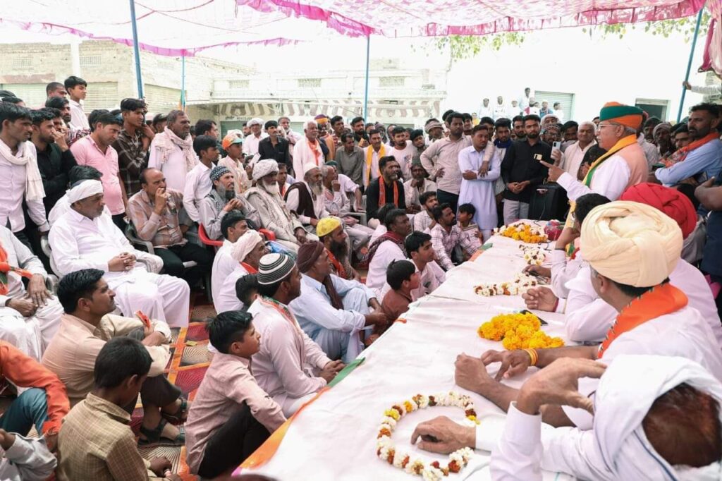 R. खबर, बीकानेर। बीकानेर लोकसभा भाजपा प्रत्याशी अर्जुन राम मेघवाल ने खाजूवाला विधायक डॉ. विश्वनाथ मेघवाल, ओबीसी मोर्चा प्रदेश अध्यक्ष चंपा लाल गेदर, महावीर सिंह चारण, गुमान सिंह राजपुरोहित, भोजराज मेघवाल, हरिकिशन सारस्वत, 465 व्यापार मंडल अध्यक्ष ब्रहमदेव चौटिया, असगर अली, फैयाज हुसैन पूर्व फल एवं सब्जी मंडी अध्यक्ष सब्बू खांन परिहार, खाजूवाला प्रधान प्रतिनिधि धर्मपाल बिरडा, खाजूवाला उपप्रधान प्रतिनिधि नरपत सिंह, भाजपा नेता तोलाराम कुकना, दिलीप पुरी, मांगीलाल मेघवाल, मोहन कस्वां, जितेंद्र राजवी, दिल्लू खान कोरी, सहीराम सारण, अर्जुन कड़वासरा, राम लक्ष्मण गोदारा, लक्ष्मण गुरिया, राम रतन गोदारा, लक्ष्मण सिंह राठौड़, भैरूराम डोगीवाल के साथ खाजूवाला विधानसभा क्षेत्र के विभिन्न गांवों में चुनावी सभायें आयोजित कर भाजपा की उपलब्धियां गिनाई एवं फिर एक बार मोदी सरकार हेतु वोट मांगे।