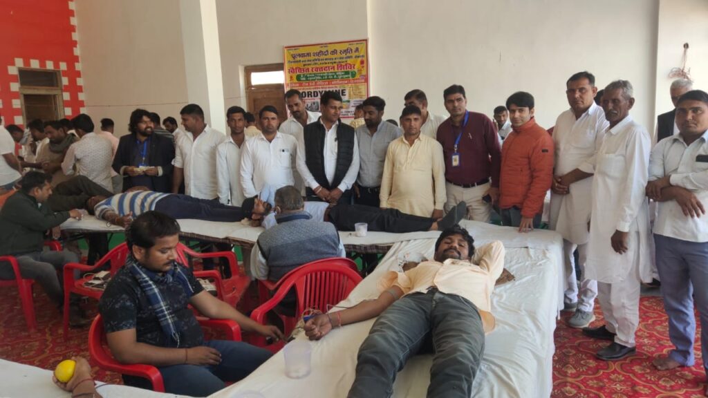 खाजूवाला, पुलवामा शहीदों की यादगार में जीवनदायिनी ब्लड सेवा समिति एवं मारवाड़ जन सेवा समिति बीकानेर व युवा संघर्ष समिति 365 हैड के संयुक्त तत्वाधान में स्वैच्छित रक्तदान शिविर का आयोजन सीमावर्ती क्षेत्र के गांव 3 केएलडी में किया गया। जिसमें बड़ी संख्या में युवाओं ने पहुंचकर बढ़ चढ़कर भाग लिया। गौरतलब है कि जम्मू कश्मीर के पुलवामा में सीआरपीएफ की एक कंपनी पर 14 फरवरी 2019 को आत्मघाती हमले में 40 जवान शहीद हो गए थे। रक्तदान शिविर में शहीद जवानों को श्रदांजलि अर्पित करके शिविर का आयोजन किया गया। शहीद ओमप्रकाश विश्नोई की बेटी सरोज बिश्नोई के द्वारा शहीदों की प्रतिमाओं पर पुष्पांजलि अर्पित कर शिविर की शुरुआत की। रक्तदान शिविर में सुबह से ही युवाओं की भीड़ पहुंचनी शुरू हो गई।