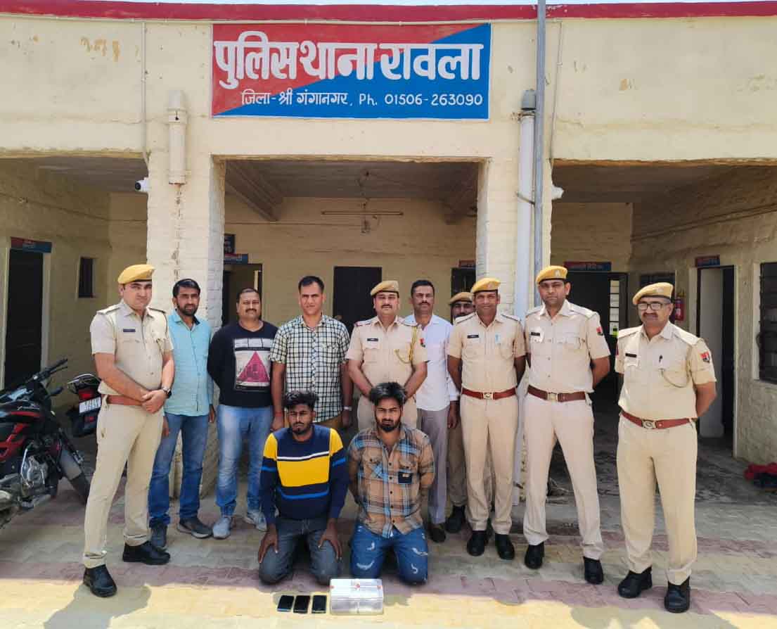 मिली जानकारी के अनुसार 3 मई को आलोक सिंह थानाधिकारी रावला को गश्त के दौरान मुखबिर से सूचना मिली कि दो संदिग्ध व्यक्ति बॉर्डर पर पाकिस्तान से हेरोइन की तस्करी की फिराक में घूम रहे हैं। जिसपर थानाधिकारी पुलिस थाना रावला द्वारा बीएसएफ टीम को साथ लेकर सीमावर्ती क्षेत्र में संयुक्त सर्च ऑपरेशन चलाया गया। सर्च अभियान के दौरान भारत-पाकिस्तान अंतरराष्ट्रीय सीमा से तकरीबन 400 मीटर दूरी पर 23 केडी की रोही में से दो संदिग्ध राजपाल सिंह पुत्र हरमेश सिंह उम्र 28 साल निवासी दाना मतड़ पुलिस थाना लखों के बहराम तहसील गुरुहरसहाय जिला फिरोजपुर पंजाब व अमरजीत सिंह पुत्र गुरदीप सिंह उम्र 22 साल निवासी राजाराय पुलिस थाना लखो के बहराम तहसील गुरुहरसहाय जिला फिरोजपुर पंजाब को पकड़ा गया। आरोपीगणों ने पूछताछ में बताया गया कि पाकिस्तान की तरफ बैठे तस्करों ने इंटरनेट कॉलिंग से संपर्क कर भारत-पाक सीमा पर पाक की तरफ से ड्रोन के द्वारा हेरोइन की डिलीवरी लेने के लिए आए हैं। आरोपीगणों के कब्जे से एक देसी कट्टा अनुमानित 315 बोर मय एक जिंदा कारतूस अनुमानित 315 बोर तथा तीन मोबाइल फोन बरामद कर आरोपी गणों को गिरफ्तार किया है। इस दौरान आरोपी पाकिस्तान से हेरोइन तस्करी कर भारत में मंगवाने हेतु अंतरराष्ट्रीय सीमा के पास घूम रहे थे। जिस पर गिरफ्तार आरोपी गणों के विरुद्ध मामला धारा 188 भारतीय दंड संहिता, 28, 29, 30 एनडीपीएस एक्ट, 3/25 आर्म्स एक्ट में दर्ज कर अनुसंधान उप निरीक्षक इमरान खान अनूपगढ़ के सुपुर्द किया है।