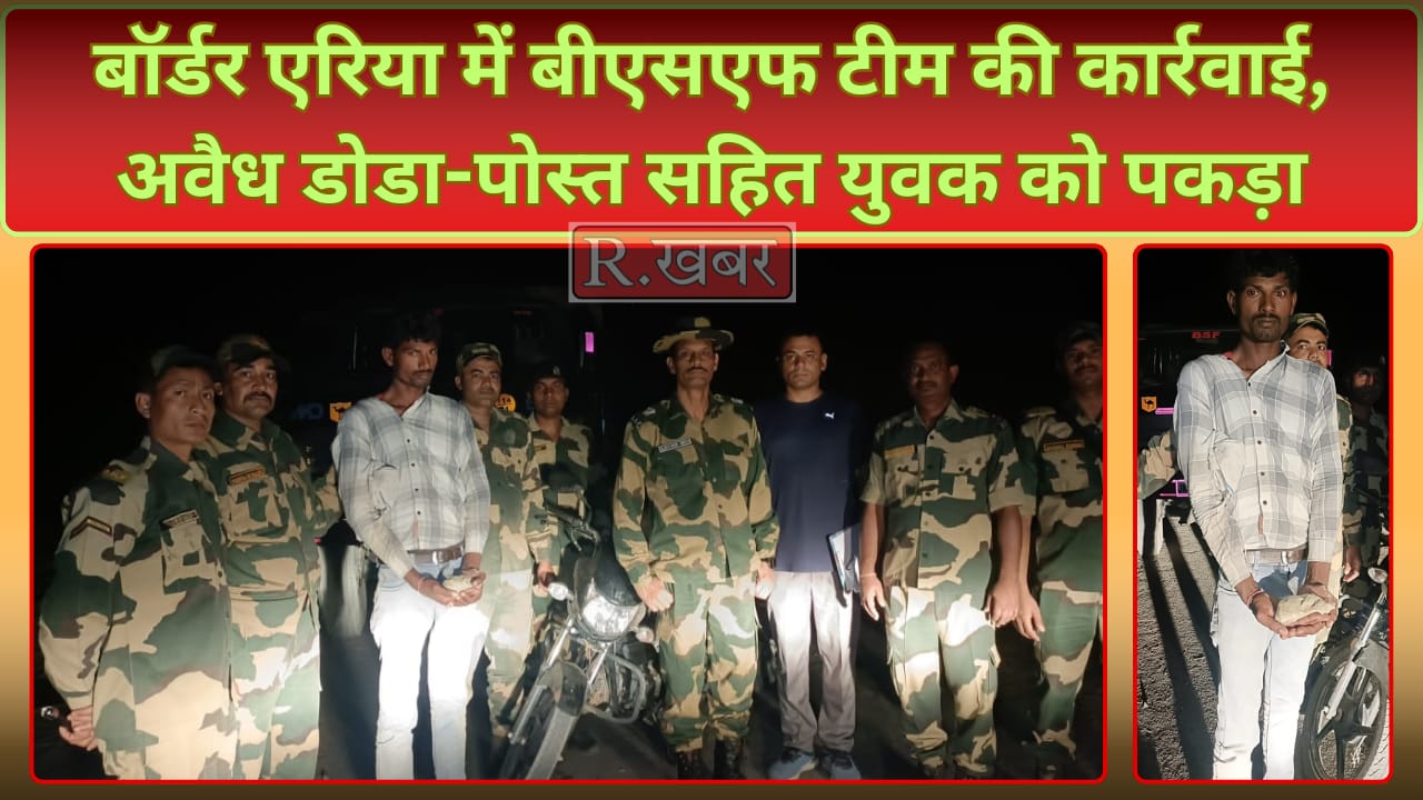 खाजूवाला, सीमावर्ती क्षेत्र में 114 वी वाहिनी सीमासुरक्षाबल की टीम ने देर रात्रि को कार्रवाई करते हुए एक युवक को पकड़ा है। जिसके पास अवैध डोडा पोस्त का पाउडर बरामद हुआ है।