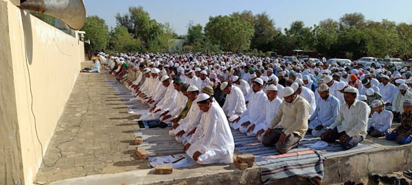खाजूवाला, ईद-उल-फितर की नमाज शनिवार को ईदगाह में पढ़ी गई। पुलिस थाना के पास स्थित ईदगाह में सुबह 9 बजे ईमाम हाफिज शौकत अली अशरफी ने ईद की नमाज अदा करवाई। ईदगाह में ईमाम हाफिज शौकत अली अशरफी ने कहा कि गरीबों के साथ ईद की खुशियां बांटे, क्योंकि लोगों में खुशियां बांटने का नाम ईद है। ईद की नमाज के बाद नमाजियों ने एक-दूसरे से गले मिलकर ईद की मुबारकबाद दी और देश में खुशहाली, अमन-चैन और आपसी भाईचारे के लिए दुआएं की गई। इस दौरान खाजूवाला सीओ विनोद कुमार, एसडीएम श्योराम व सीआई अरविंद सिंह शेखावत के नेतृत्व में पुलिस के जवान मौजूद रहे।