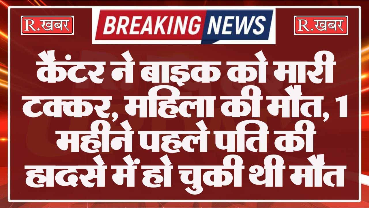 कैंटर ने बाइक को मारी टक्कर, महिला की मौत, 1 महीने पहले पति की हादसे में हो चुकी थी मौत