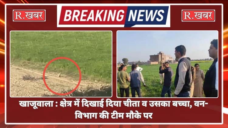 R.खबर ब्यूरो। खाजूवाला से बड़ी खबर सामने आई है जंहा ग्रामीण क्षेत्र में गुरुवार को चीता व उसके बच्चा दिखाई दिया। जिसके चलते ग्रामीण क्षेत्र में हडक़ंप मच गया और वन-विभाग को सूचना दी गई।