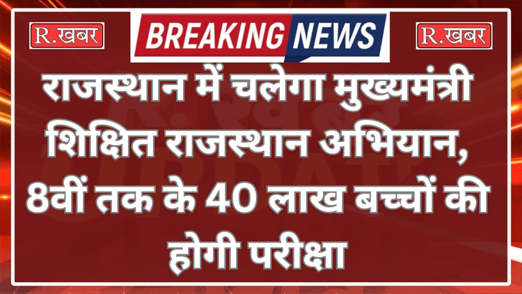 R.खबर ब्यूरो। जयपुर, प्रदेश में मुख्यमंत्री शिक्षित राजस्थान अभियान चलेगा। जिसमे 21 व 22 जनवरी को पहली से 8वीं कक्षा तक के 40 लाख बच्चों की परीक्षा होगी। जानकारी के अनुसार शिक्षा विभाग की ओर से 3 विषयों की कमियों का पता लगाने के लिए यह अभियान चलाया जाएगा। बताया जा रहा है कि पूर्व कक्षा दक्षता आधारित आकलन हिंदी, अंग्रेजी और गणित विषयों की परीक्षा होगी।