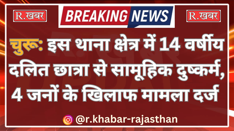 R.खबर ब्यूरो। चूरू से बड़ी खबर सामने आई है, जंहा एक नाबालिग छात्रा के साथ सामूहिक दुष्कर्म का मामला सामने आया है। जानकारी के अनुसार रतननगर थाना क्षेत्र की इस घटना में पीड़िता आठवीं कक्षा में पढ़ने वाली 14 वर्षीय छात्रा है। पीड़िता के दादा की शिकायत पर महिला थाने में चार आरोपियों के खिलाफ मामला दर्ज किया गया है।