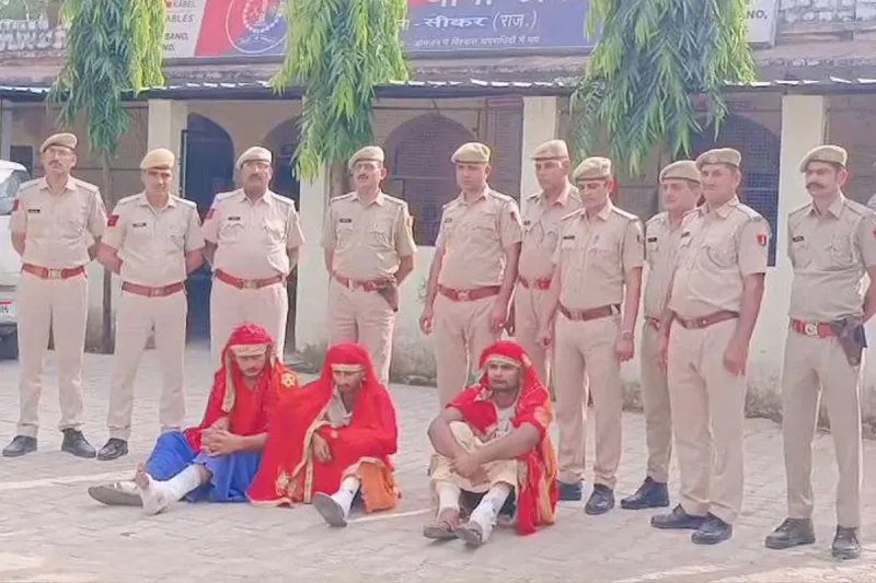 R.खबर ब्यूरो। राजस्थान के सीकर जिले के डाबला क्षेत्र में 23 अक्टूबर को हुई फायरिंग की वारदात का पुलिस ने मात्र सात दिन में खुलासा कर दिया है। पुलिस ने इस मामले में तीन आरोपियों को गिरफ्तार किया है, जो फरारी के दौरान महिलाओं के वेश में पहाड़ी इलाके में छिपे हुए थे। पुलिस ने जब उन्हें पकड़ा, तो महिलाओं के कपड़ों में ही ग्रामीणों के सामने जुलूस निकालकर पेश किया।