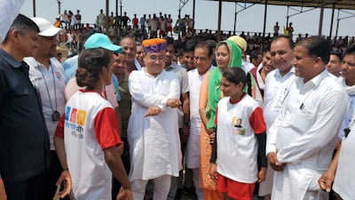 इससे पहले मंत्री मेघवाल ने दीप प्रज्वलन कर ब्लॉक स्तरीय मुकाबलों की शुरुआत की। उन्होंने खेल ध्वज का आरोहण किया और मार्च पास्ट की सलामी ली। मार्च पास्ट में विद्यार्थियों ने सधे हुए कदमों के साथ भागीदारी निभाई। इस दौरान सांस्कृतिक कार्यक्रम प्रस्तुत किए गए। उन्होंने पंचायत समिति द्वारा राज्य सरकार की कल्याणकारी योजनाओं पर आधारित प्रदर्शनी का अवलोकन किया। आपदा प्रबंधन मंत्री ने खो-खो और कबड्डी के मुकाबलों की शुरुआत करवाई तथा खिलाडिय़ों की हौसला अफजाई की। वहीं टोस करवाकर मैच प्रारम्भ करवाया।