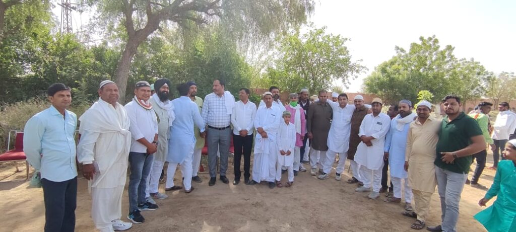 इसके साथ ही केबीनेट मंत्री गोविन्द राम मेघवाल की ओर ईंद के मौके पर मिठाई भेजी गयी ओर मुबारक बाद दी गयी। मुस्लिम भाइयो ने एक दुसरे को ईद की गले मिल कर बधाई दी। मस्जिद में नमाज अदा होने के बाद भी हिन्दू भाइयो ने मुस्लिम भाइयो को गले मिलकर एक दूसरे को ईद की बधाई दी। इस अनूठेपन से सौहार्द झलक उठता है। ईंद के मौके पर सीसीबी चैयरमैन भागीरथ ज्याणी, पुर्व सरपंच पदमाराम चौहान, एड. सुभाष बजाज, सरपंच प्रतिनिधि ओमप्रकाश मेघवाल, पुष्पेन्द्र सिंह, जगसीर सिंह, मंगल सिंह, सिमरनजीत सिंह, बाबू भाई, आदि ने पहुंच कर बधाईं दी ओर कानून व्यवस्था को लेकर थानाधिकारी अरविन्द सिंह शेखावत के नेतृत्व में पुलिस बल तैनात रहा।