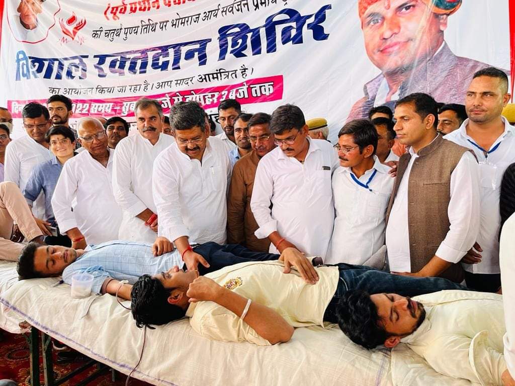मुख्य अतिथि ऊर्जा मंत्री भंवर सिंह भाटी उपस्थित रहे। उन्होंने कहा कि रक्तदान से बड़ा कोई दान नहीं होता। गंभीर बीमार और दुर्घटनाग्रस्त व्यक्ति के जीवन की रक्षा के लिए यह सबसे बड़ा माध्यम बनता है। यह आयोजन उनके प्रति सच्ची श्रद्धांजलि है। उन्होंने पहली बार रक्तदान करने वाले युवाओं को शुभकामनाएं दी तथा कहा कि जनसेवा का यह जज्बा बनाए रखें, जिससे जरूरतमंद व्यक्ति को संबल दिया जा सके। उन्होंने कहा कि भोमराज आर्य ने सदैव पीड़ित और शोषित व्यक्ति की सेवा और सहायता को प्राथमिकता दी। वह सच्चे जनप्रतिनिधि थे, जो सदैव आमजन से जुड़े रहते थे। उन्होंने कहा कि संस्था द्वारा ऐसे आयोजन समय-समय पर किए जाएं,जिससे स्व. भोमराज आर्य की यादें चिरस्थाई बनी रहे तथा युवा उनके आदर्शों का अनुसरण कर सकें।