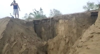 छतरगढ़, क्षेत्र में रविवार को जोरदार बरसात होने के कारण इन्दिरा गांधी नहर मुख्य शाखा के 507 हेड के पास पटड़े पर अलग अलग स्थानों पर पांच कटाव आ गए है। तीन कटाव इतने बड़े हो गए हैं कि रात्रि को अगर बरसात होती है तो मुख्य शाखा में कटाव पहुंच सकता है। किसानों का मानना है कि नहर में कटाव आने पर भारी तबाही होने का खतरा हो गया है। किसान वर्ष २००४ में मुख्य शाखा के इसी क्षेत्र में घेघड़ा गांव के पास आए कटाव को अभी भूले नहीं है। पूरा गांव नहर के पानी में बह गया था। लेकिन जनहानि से बचाव हो गया था। नहर पटड़े पर आए कटावों को लेकर किसान चिन्तित है। बड़े कटाव व जमीन धसकने के कारण कटावों को भरना किसानों के बलबुते से बाहर है। विदित रहे करीब एक सप्ताह पूर्व इसी एरिया में इन्दिरा गांधी मुख्य शाखा के पटड़े पर बड़े कटाव आ गए थे। तब किसानों ने विभाग को साथ लेकर अपने प्रयास से पटड़े दुरस्त कराए थे। पटड़ों के कटाव में रेत भरती की गई लेकिन रविवार को भारी बरसात ने इन पटड़ों में भरी रे त को बहा दिया। इन्दिरा नहर मुख्य शाखा में कभी भी अनहोनी होने की आशंका पर जागरूक नागरिक केप्टन चन्द्र चौधरी सेवा समिति संयोजक एवं युवा किसान किशोर जाखड़ ने कनिष्ठ अभियंता गणेश दान चारण, सहायक अभियंता डूडी को दुरभाष पर सूचना दी। लेकिन अधिकारियों ने इस मामलें पर गंभीरता नहीं दिखाने पर किसान हताश है।