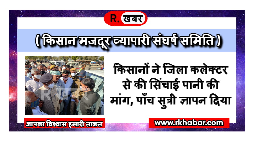 किसानों ने पुलिस चौराहे पर संरक्षक थान सिंह भाटी के नेतृत्व में जिला कलेक्टर को ज्ञापन सौंपा। जिसमें इ.गा.न.प. जो वर्तमान वरियता क्रम 12 जनवरी को समाप्त हो गई है। उसे यथावत रखते हुए रबी फसल को तीन बारी पानी देने की मांग की। ताकि रबी फसल को पकाया जा सके तथा प्रथम चरण का 58 प्रतिशत हिस्सा पूर्ण किया जाए। उसी के साथ ही खाजूवाला खण्ड में अधिशासी अभियन्ता का पद लम्बे समय से रिक्त चल रहा है। जिसे तुरन्त प्रभाव से भरने की मांग की। खाजूवाला उपखण्ड खरीफ 2018-19 का बीमा क्लेम दिलाया जाए। खण्ड के प्रधानमंत्री किसान सम्मान निधि की किस्त आधे अधूरे किसानों को मिल रही है। ऑनलाईन जानकारी लेने पर जिला व राज्य स्तरीय पर त्रुटि बताई जा रही है। जिसे तत्काल प्रभाव से समाधान किया जावे। क्षेत्र में चारे का भंयकर संकट है और खाजूवाला तहसील अभावग्रस्त घोषित की गई है। तो जल्द से जल्द चारा डिपो खोलकर किसानों को राहत दी जावे। किसानों ने जिला कलेक्टर को कहा कि इन सभी मांगों को लेकर किसान उपखण्ड अधिकारी कार्यालय के समक्ष अनिश्चितकालीन धरने पर बैठे है। जो आगामी जारी रहेगा।
