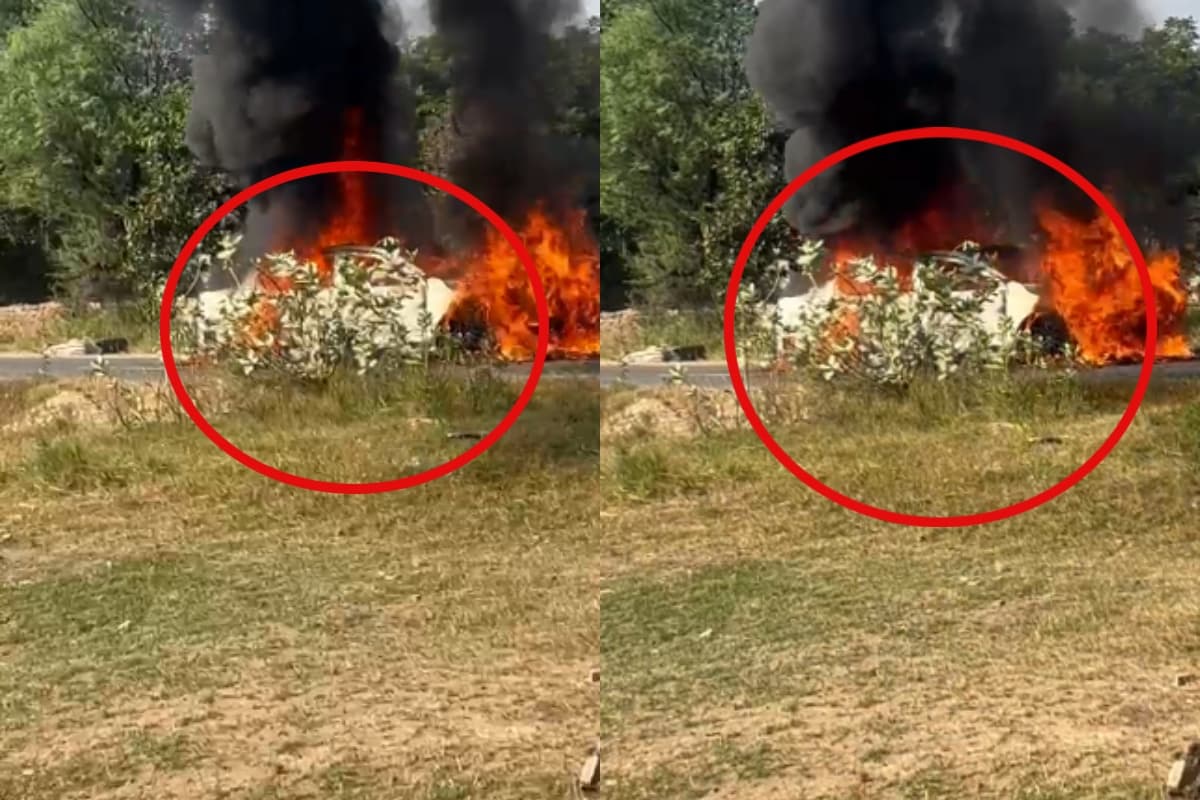 चलते-चलते आग की लपटों में घिरी ‘लग्जरी कार’, युवक ने छलांग लगाकर बचाई अपनी जान