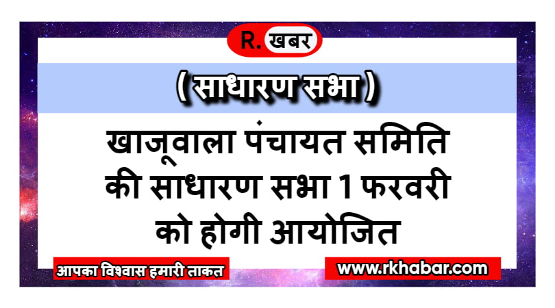 खाजूवाला, पंचायत समिति खाजूवाला की साधारण सभा की बैठक प्रधान ममता बिरड़ा की अनुशंसा पर 1 फरवरी मंगलवार को दोपहर 12:00 बजे पंचायत समिति सभागार में आयोजित की गई है।