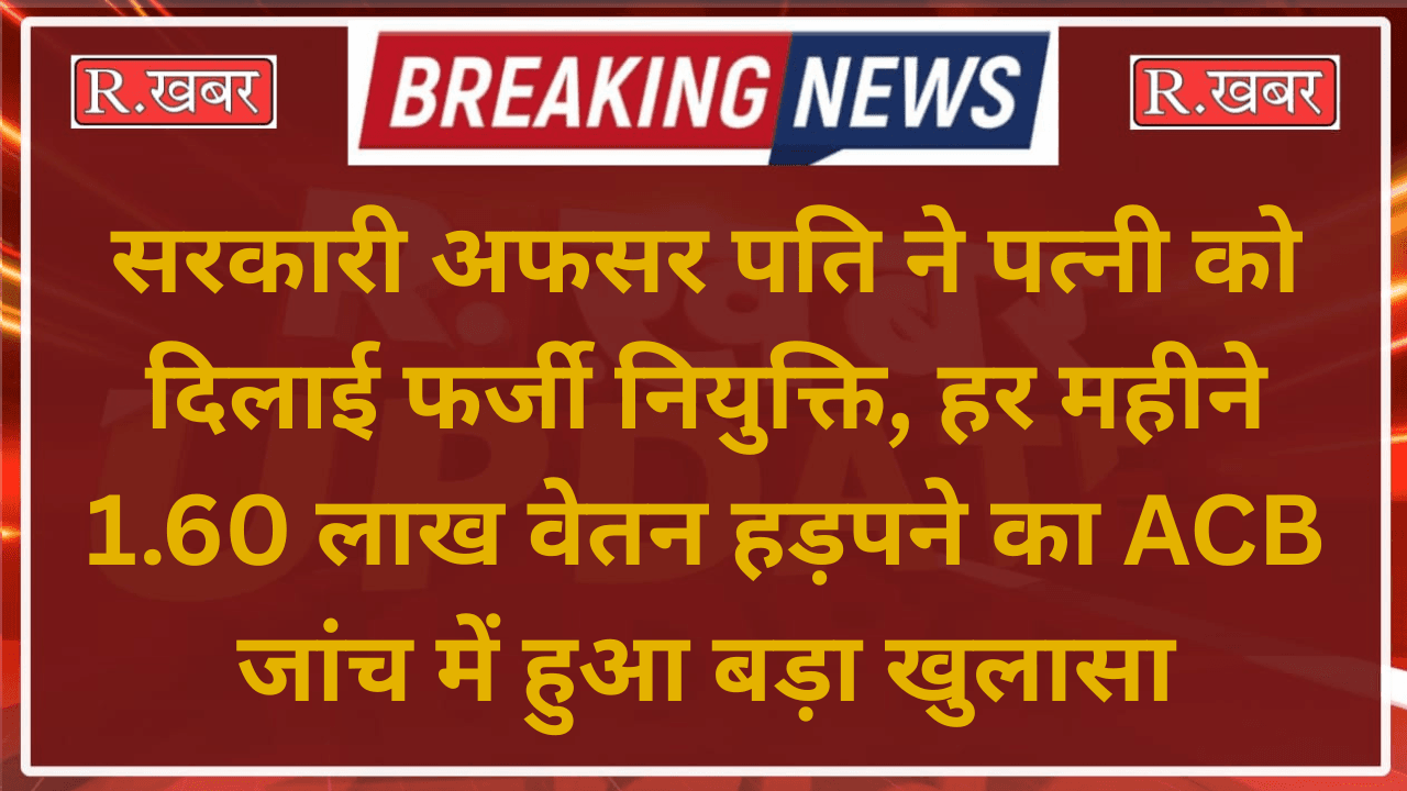 सरकारी अफसर पति ने पत्नी को दिलाई फर्जी नियुक्ति, हर महीने 1.60 लाख वेतन हड़पने का ACB जांच में हुआ बड़ा खुलासा