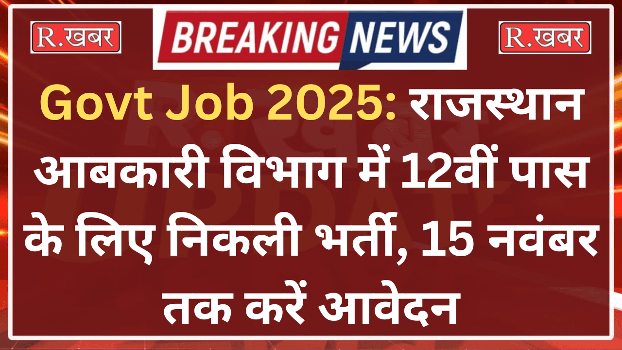 Govt Job 2025: राजस्थान आबकारी विभाग में 12वीं पास के लिए निकली भर्ती, 15 नवंबर तक करें आवेदन