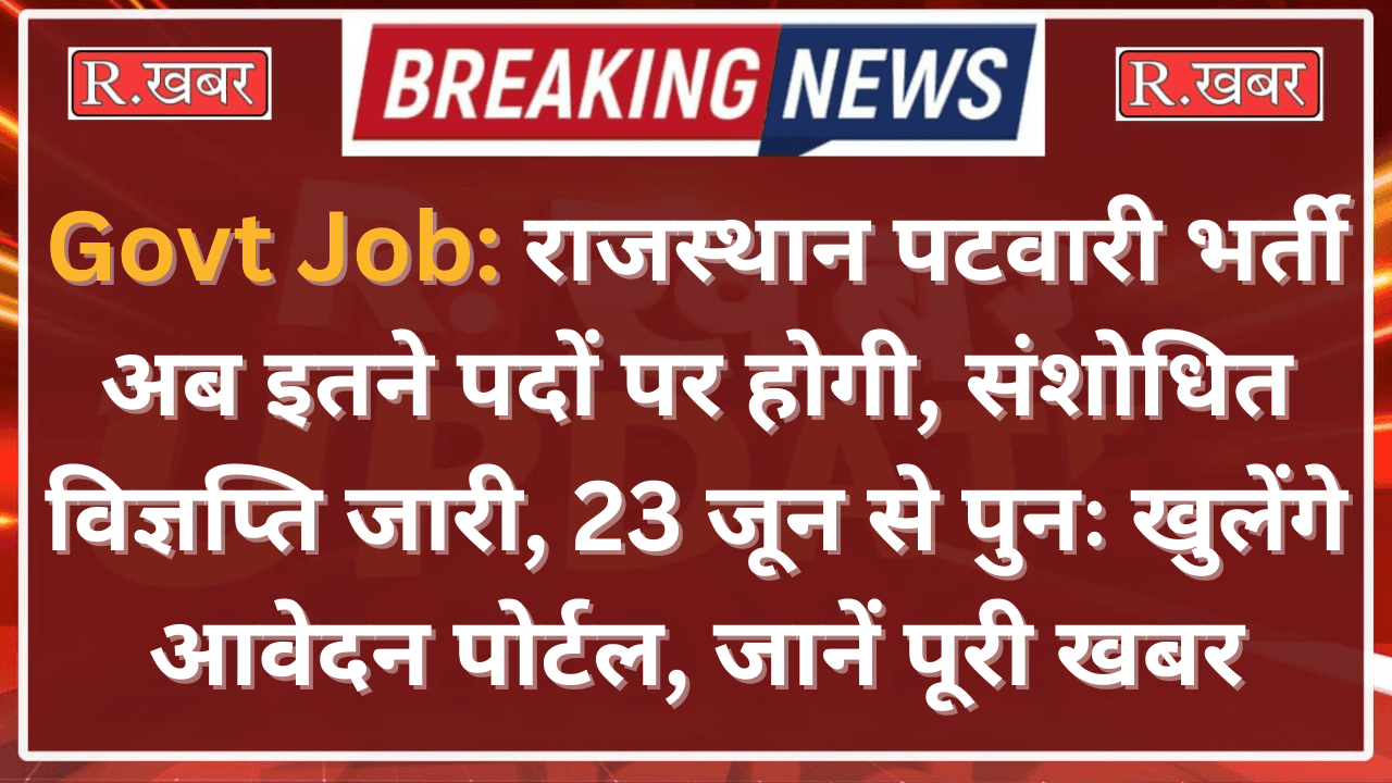 Govt Job: राजस्थान पटवारी भर्ती अब इतने पदों पर होगी, संशोधित विज्ञप्ति जारी, 23 जून से पुनः खुलेंगे आवेदन पोर्टल, जानें पूरी खबर